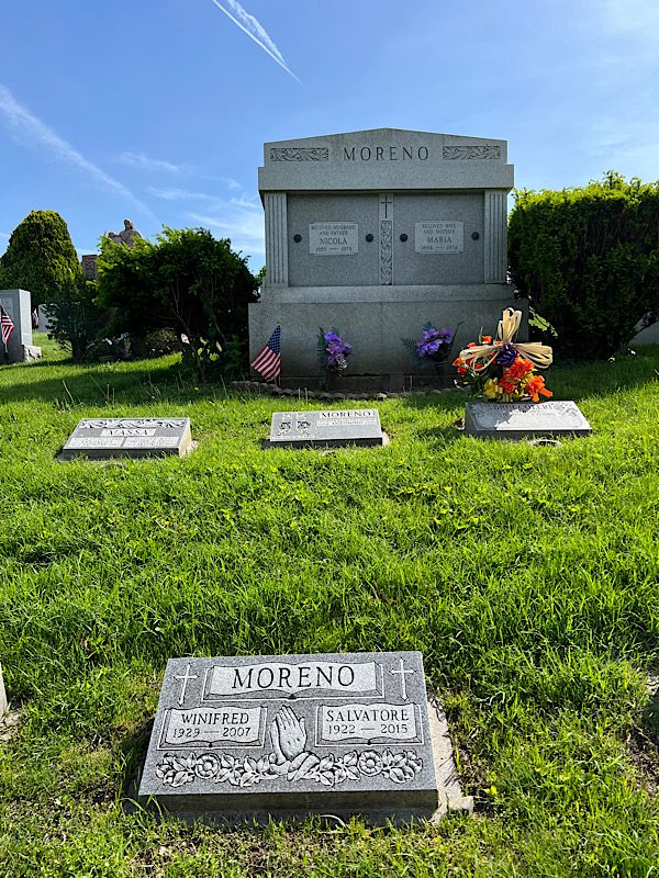 According to his obituary, Josephine predeceased Charles, dying in 1990. She is also buried at Green-Wood. His obituary indicates he was survived by his daughter, Rosemarie D’Amario, her husband Vincent, grandchildren Vincent and Gina, and four siblings, Frances, Sadie, Dominick and Marie. Crestwood Mausoleum, Crypt #506E.