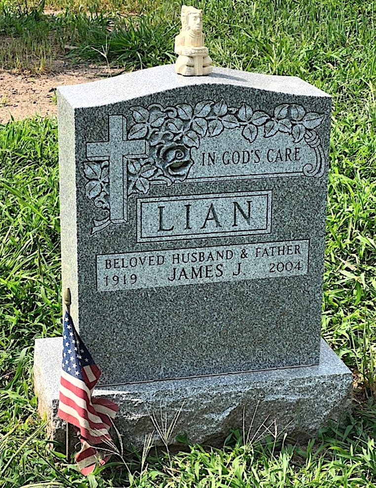 LIAN, JAMES J. (1919-2004 ) Private, United States Army. James was born in New York to parents George and Rebecca Lian, Syrian immigrants who had arrived in the United States in 1904 and 1909/10 respectively. As per the 1920 census, his father was 35 years old and a retail merchant in the lace industry; his mother was 30 and could not read or write. The couple owned their home and had four sons: Fred (8 years old), Joseph (6), Charles (3 and a half), and the youngest James (who was 4 months old).