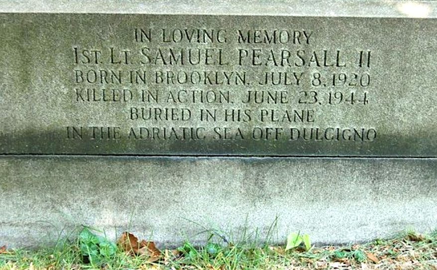 On June 23, 1944, Pearsall’s plane crashed into the Adriatic Sea off Dulcigno, Yugoslavia, and he was killed. He was 23 years old. Samuel, along with his crew, was awarded the Air Medal with two oak leaf clusters, as well as the Purple Heart. He is buried at sea in his aircraft.