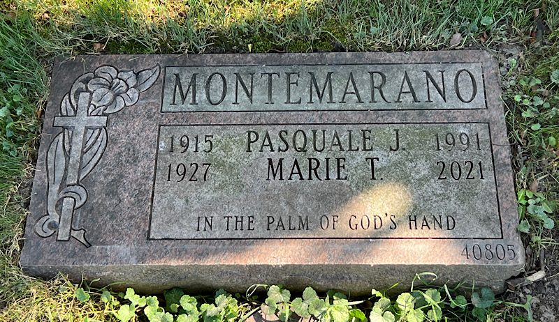 At the time of the 1950 federal census, Innocenzo was still living at home with his parents. The notation on that census that he was unemployed is incorrect, his daughter notes that he was in fact a sewing machine and television repairman and had been working in that trade for several years. (At that time, televisions had tubes.) On April 29, 1950, he married Rachel Ann Brancato. Together they raised five children. According to his daughter, his primary employer after the war was the United States Post Office. In that position, he drove 18-wheeler trailers from the main Post Office to local post offices. He also worked part-time as a driver for the City of New York. He died of Covid on June 27, 2020 at the age of 94; his cremated remains were interred at Green-Wood in July 2020. Crematory Atrium, niche N55D.