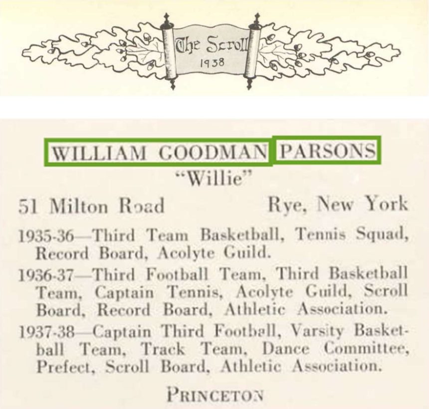 By 1930, the Parsons had moved from Long Island to Westchester and now resided on Millwood Road, in Chappaqua, New York. As recorded in the 1930 census, the family employed a butler, servant, chauffeur, and cook by the names Bernard and Anna Sudholt and John and Sophie Kracke. William attended school and his father was working as a real estate broker.