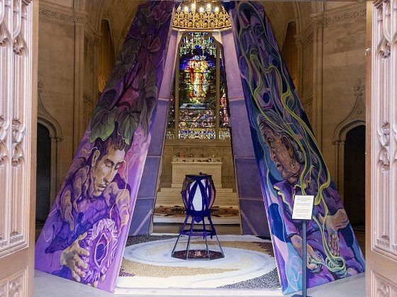 Since 2018, Green-Wood has commissioned artists to create a large-scale community altar in the Cemetery’s Historic Chapel in honor of the holiday each year. This year’s altar, created by Raul Ayala, pays homage to the traditions of the Ecuadorian Andes, where November 2nd is celebrated as Día de los Difuntos (Day of the Deceased or All Soul’s Day).