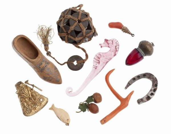 At the height of the Victorian era, Edward Lovett (1852-1933) spent his days working as a bank teller in London’s financial district and his nights exploring the city’s poorer areas. He was on the hunt to amass what would become one of the world’s largest collection of amulets, charms, and talismans. Among his curious findings were horseshoes hung above the bed to ward off nightmares, flints to cure bouts of gout, and acorn-shaped pulls for window blinds to protect houses from lightning. Lovett charted the history of these objects and other English folklore in numerous articles and lectures. In 1916, he curated the exhibit “The Folklore of London” at the Wellcome Historical Medical Museum.