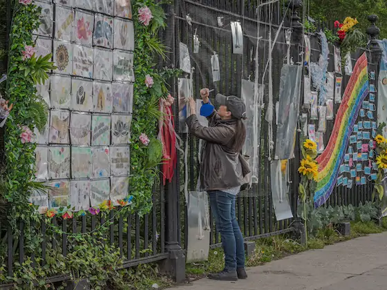 From May 2020–June 2021, NAMING THE LOST Memorials (NTLM), a small team of volunteer artists, activists, and folklorists, curated memorial sites in New York City to name and remember victims of the COVID-19 pandemic. The memorials consisted of tens of thousands of nameplates with personalized drawings and photos, created by the families and friends of those who have lost loved ones to the virus. With a grant from the Mellon Foundation, NTLM, in collaboration with City Lore, will continue its work from 2023-2025. Green-Wood will be home to new memorials each spring.